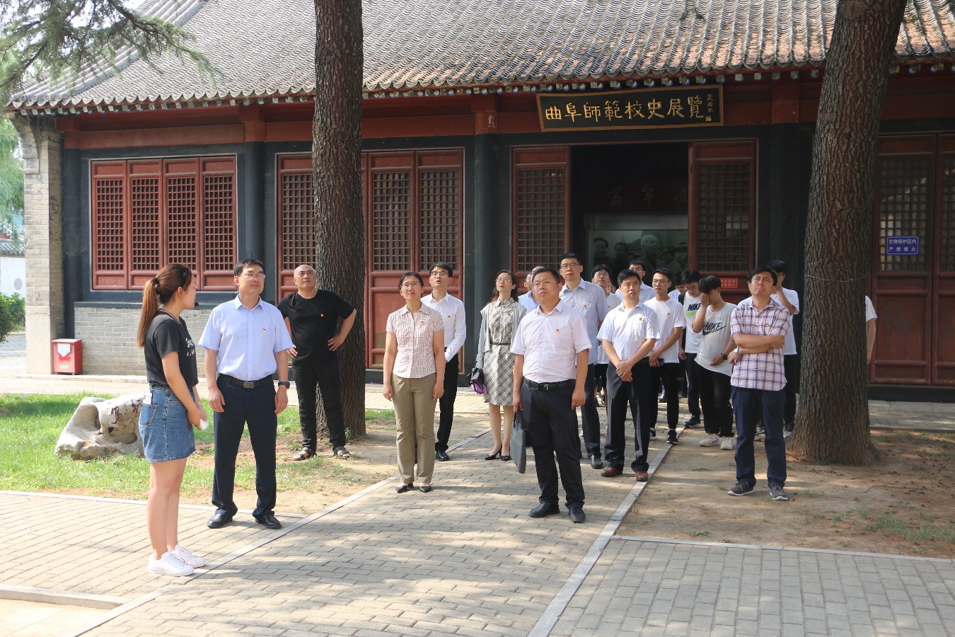 在讲解员的带领下,师生们怀着崇敬之情走进有着光荣革命传统和深厚文化底蕴的初等教育学院(曲阜师范校区),先后参观了学校大礼堂、工字形教学楼、校史展览馆、中共省立二师支部纪念馆等,追寻“红二师”先辈们的奋斗足迹,深情缅怀革命先烈的光辉业绩。这座革命熔炉铸造了万里等革命家及大批的仁人志士,为我国的革命事业做出了巨大的贡献; 这里见证了《子午南子》话剧的演出、鲁南七校学生卧轨截车等轰动全国的事件;抗日战争时期以此为中心创建的曲泗北和邹东尼山革命根据地,为抗日战争的胜利作出了积极贡献;解放战争时期的淮海战役和济南战役曲阜会议被光荣地载入中国解放战争的史册。当年“红二师”先辈们艰苦办学、英勇抗争的革命历程,不屈不挠、矢志不渝的革命精神和心系天下、一心为民的宽厚情怀,深深感染着在场的每一位师生。最后,活动在师生们热烈的掌声中圆满结束。
