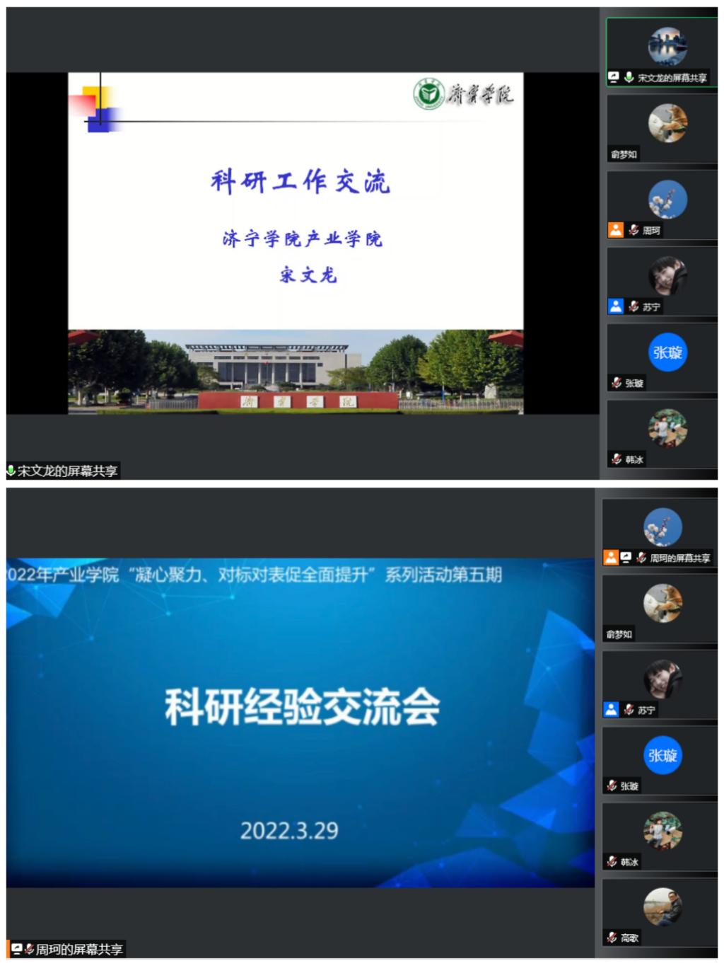 3月29日,产业学院通过线上会议召开2022年“凝心聚力、对标对表促全面提升”活动第五期——科研经验交流,全体教职工参加会议。