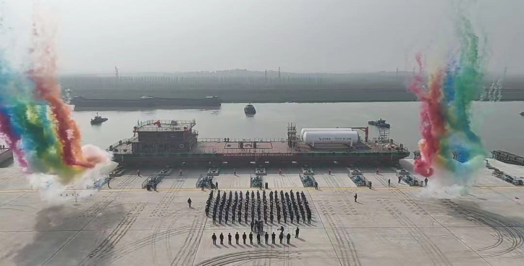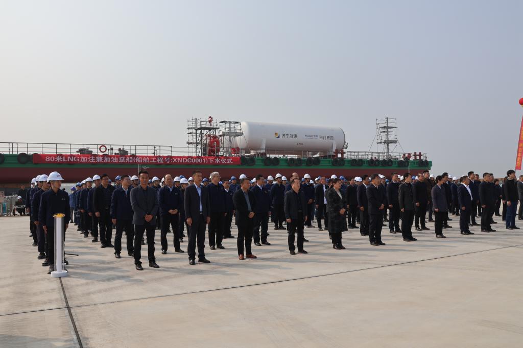 仪式由济宁能源发展集团副总经理张雷主持。济宁市国资委党委书记、主任张华山宣布了“新船吉水”的启动,济宁能源发展集团党委副书记、总经理王崇景发表了致辞,山东新能船业有限公司党支部书记、董事长、总经理张强对船舶设计情况进行了介绍。