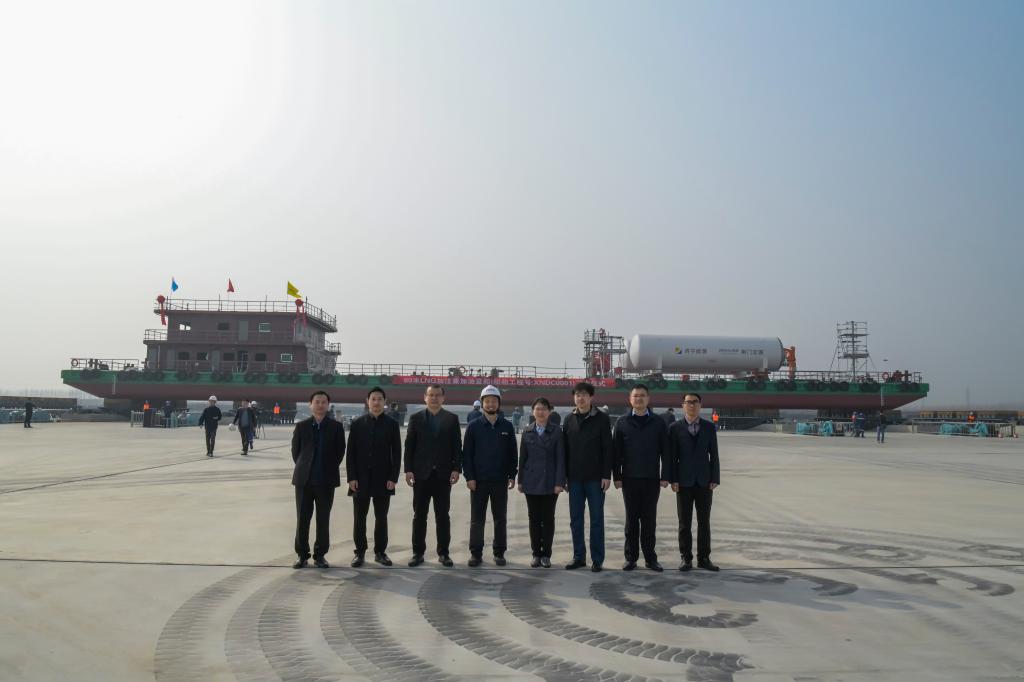 3月16日上午,山东新能船业有限公司举行首制80米LNG加注兼加油趸船(船舶工程号:XNDC0001)的船舶吉水仪式。我校现代港航产业学院成员,教务处处长周珂,伟德victor1946党委书记王振平,院长张营,学术副院长安磊、夏自祥,挂职科技副总李吉超、张圣东受邀参加了此次吉水仪式。