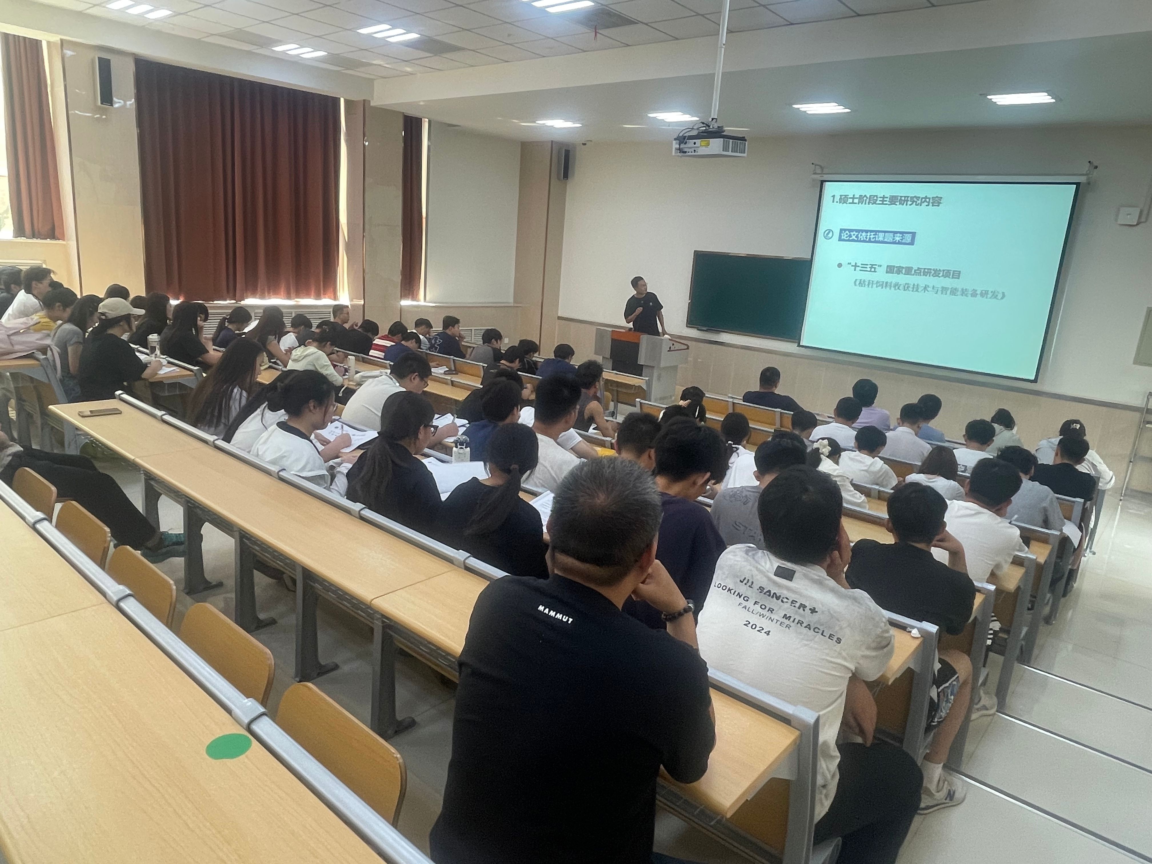 高国民结合个人科研经历,围绕农机装备智能化、农业机器人导航系统、多源传感器环境感知等前沿技术展开讲解,详细介绍农业自动控制技术在田间环境中的实际应用案例及研究进展。此外,高国民还分享学院机器人方向竞赛成果,重点介绍了“RoboMaster机甲机器人”竞赛战队建设情况及大学生创新创业大赛中智能户外清扫安防机器人项目的研发经验与成效。