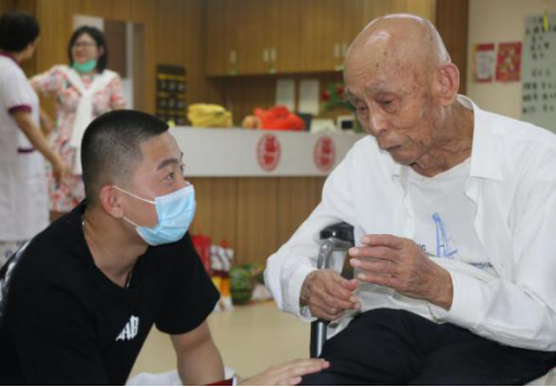 当天下午,实践队前往济宁普爱敬老院,慰问90多岁老党员李文进,听老党员讲述红色故事,接受党史学习教育。李老说他这辈子最骄傲的事就是成为中国共产党的一员,他说自己只是中国千千万党员的一员,别人说他无私奉献,但他认为自己只是做了最普通的事,他们胸前的党徽,是一份沉甸甸的责任。