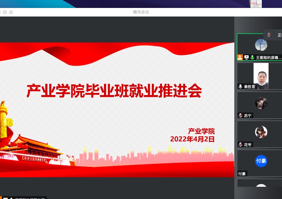 为扎实做好2022届毕业生就业工作,全力以赴保障毕业生更加充分更高质量就业,4月2日产业学院召开了2022届毕业班就业推进会,会议以视频方式举行,学院党委书记苏宁、副书记秦胜营、毕业班辅导员、班主任和全体毕业生参加会议。