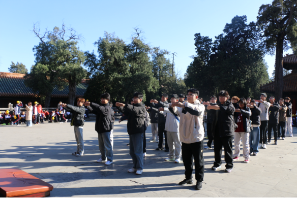 活动中,王艳红、于明鑫围绕党的二十届四中全会精神,结合中华优秀传统文化向同学们做了一场精彩的宣讲。宣讲过程中,老师们精心设计兼具理论性与实践性的问题,同学们积极回答,现场思维碰撞、氛围热烈。同学们以镜头定格古建筑的巍峨风貌,用影像撷取斗拱飞檐的精巧细节,传递对传统文化的深深敬畏。 杏坛之下,大家齐声诵读《论语》经典篇目,琅琅书声浸润文化馨香,让中华优秀传统文化基因在文脉传承中代代相传。在庄重肃穆的氛围中,同学们行拜师礼,躬身践行尊师重教的传统美德,更坚定了传承优秀传统文化、勇担时代使命的青春信念。