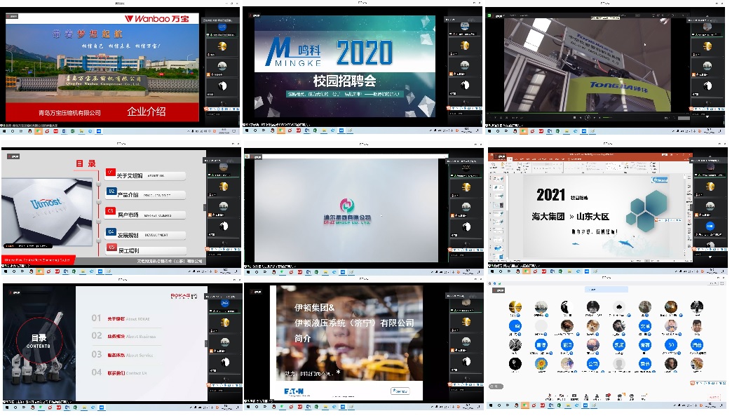 12月6日,物理与信息工程(机械工程)系举行了2020年实习暨就业推介会。根据疫情防控管理要求,本次推介会采取线上方式进行。山东通佳机械有限公司、伊顿液压系统(济宁)有限公司、珞石(山东)智能科技有限公司、青岛鸣科工业设备维修有限公司、新希望六和股份有限公司、青岛海信集团、苏州博理新材料科技有限公司等21家单位应邀参加了本次推介会,并通过腾讯会议进行了宣讲。物理与信息工程(机械工程)系近600名2021届毕业生分别于曲阜校区及高新区应用型人才培养基地认真听取了宣讲,并通过各种网络渠道与相关单位进行了沟通,递交个人简历。推介会为学生与企业之间搭建了沟通交流的桥梁,增加了学生对企业的了解和认识,为下一步实习及就业工作的顺利开展奠定了坚实的基础。