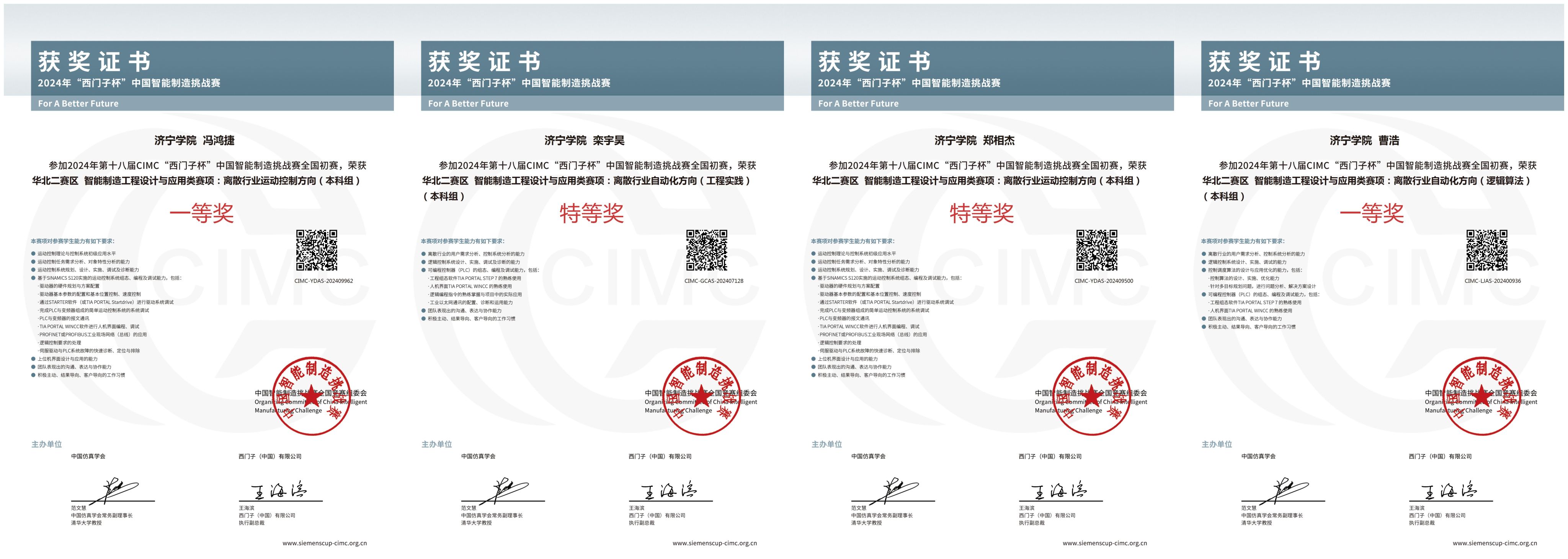近日,第十八届CIMC“西门子杯”中国智能制造挑战赛华北二赛区公布了获奖名单,我校伟德victor1946在参加的离散行业运动控制方向、离散行业自动化方向(工程实践)、离散行业自动化方向(逻辑算法)三个赛项中,获特等奖2项,一等奖2项,二等奖2项,三等奖1项。2支特等奖和2支一等奖参赛队根据比赛规则顺利进入全国总决赛,创造了我校参加该赛事以来拿到国赛资格的最好成绩。