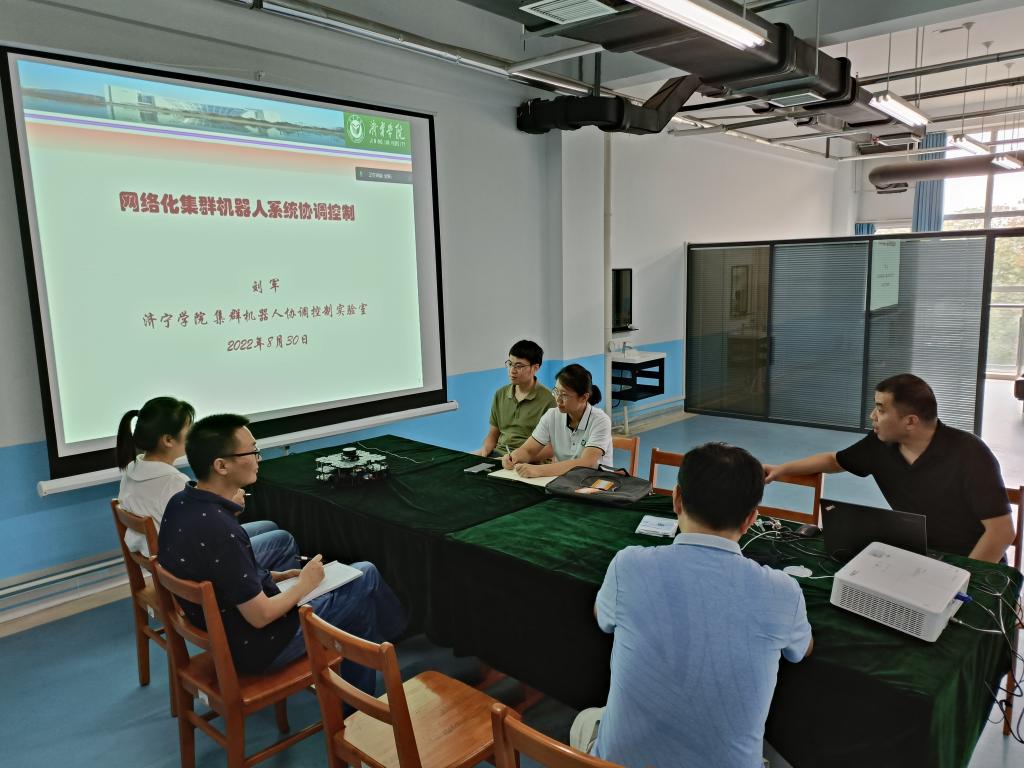 2022年8月30日下午2点30分,刘军博士在集群机器人控制实验室做了“网络化集群机器人系统协调控制”的报告。在该报告中,刘军博士主要从集群机器人信息传输模式、机器人动力学以及复合任务建模三个方面报告了集群机器人系统对称任务以及多重对称任务协调控制算法设计等问题。