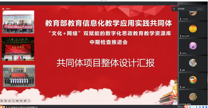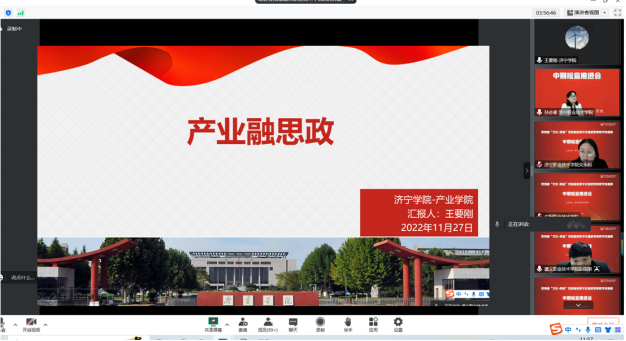 11月27日上午,由济宁职业技术学院牵头,联合35家院校、科研院所等联合申报的《“文化+网络”双赋能的数字化思政教育教学资源库》网络思政教育共同体项目召开中期检查推进会,产业学院党委书记苏宁、辅导员王要刚作为项目组成员参会并作题为“产业融思政”网络思政平台建设的情况汇报。
