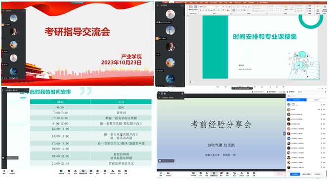 考研已进入冲刺备考阶段,为缓解考研同学的心理压力。10月23日晚上,产业学院通过线上方式举行考研冲刺阶段指导交流会,邀请往届2名考研同学进行了交流分享。