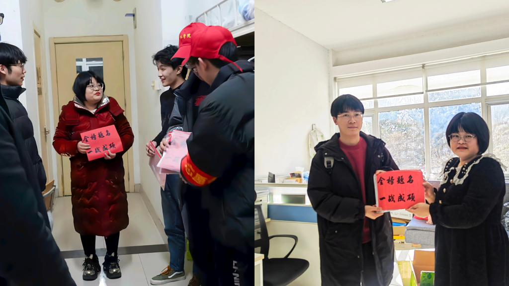会后,毕业班辅导员为考研学生送上学院特别定制、精心准备的“考研加油包”,鼓励他们要全力以赴,以最佳的状态,考出最理想的成绩。辅导员王琪带领部分学生党员走进宿舍为考研学子们送上“考研加油包”及祝福,鼓励他们面对挑战勇于追求自己的梦想。