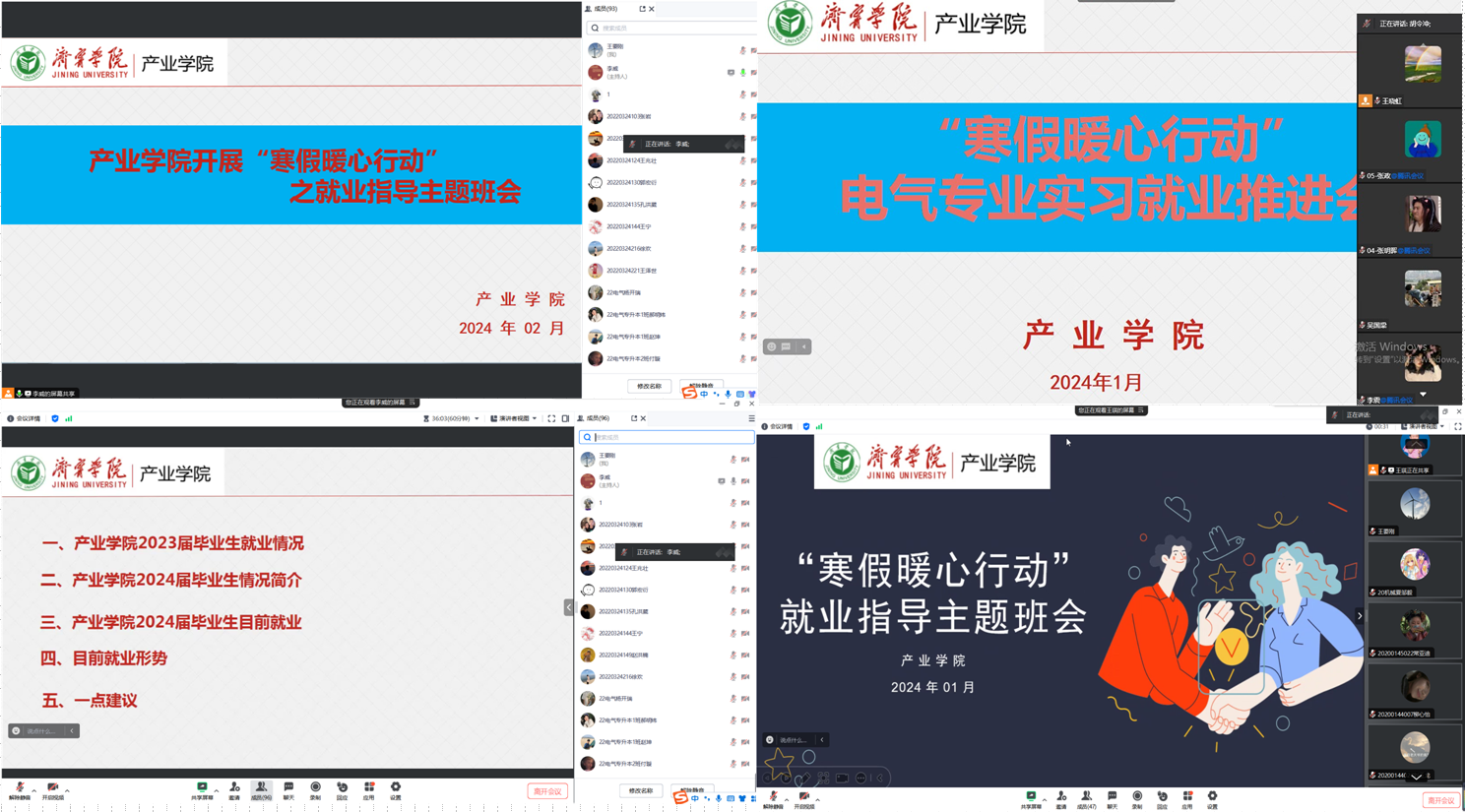 为抢抓春季就业关键期,全力促进学院2024届毕业生尽早就业、顺利就业。2月21日-22日,产业学院针对2024届毕业班级召开“寒假暖心促就业”线上就业指导主题班会,各班毕业班辅导员和班主任参加。