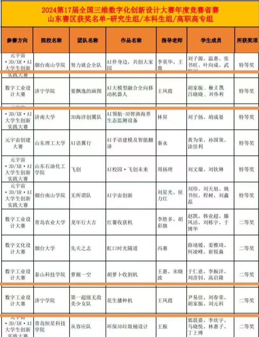 近日,全国三维数字化创新设计大赛山东赛区成绩公布,我校伟德victor19462支参赛队荣获特等奖1项、二等奖1项,其中特等奖获奖团队晋级国赛。