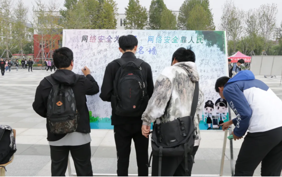 承诺签名,共建网络安全环境。学院团委于10月14日下午发起网络安全签名墙活动。签名墙前同学们用实际行动表达维护网络安全的决心。大家纷纷表示,营造清朗网络空间是青年的责任与担当,要努力提高网络素养,养成文明上网的行为习惯,自觉维护网络安全。