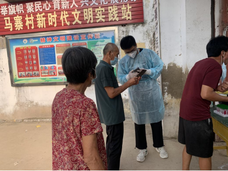 产业学院的刘志渠同学在菏泽市郓城县马寨村开展疫情防控志愿者工作。他主要负责帮助医务人员做好核酸登记,进行核酸场地全方位消毒,帮助村民更好地完成核酸检测。在志愿服务期间,他能够准确无误地对村民进行核酸登记,帮助医务工作者有序、有效、快速地完成每天的全员核酸检测,获得了村领导干部的一致好评。他说:“通过这次志愿者活动,我深刻体会到了作为志愿者的意义所在,不仅帮助了他人,自身也感到无比的幸福与自豪,在提高自身能力的同时也让我知道了基层医疗工作人员的艰辛和不易。我相信在这场防疫战争中,在我们每一个人的努力下,疫情一定会得到有效控制。”