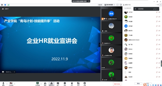 为深入贯彻落实党的二十大精神,锚定“走在前、开新局”,引导大学生树立正确的择业观和就业观,帮助青年学子实现更加充分、更高质量的就业,助力打造新时代人才集聚和创新高地。11月9日晚,产业学院开展线上企业HR就业宣讲会,会议由辅导员王要刚主持,辅导员武晨曦以及产业学院2023届毕业生参加。此次宣讲会邀请金能化学、东岳集团和赛轮集团负责人担任主讲嘉宾。