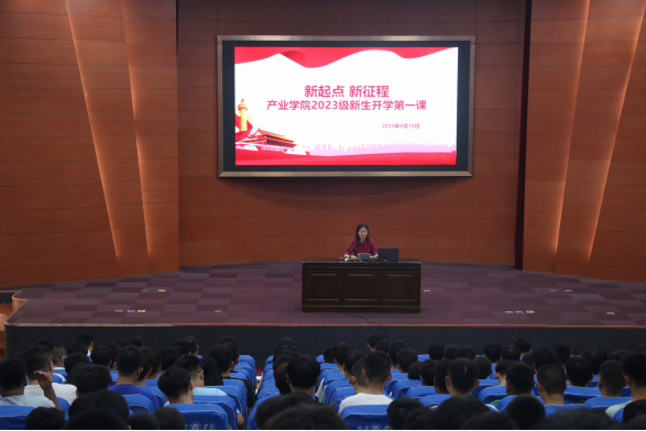 9月10日,产业学院在9号楼报告厅举行2023级新生见面会暨“开学第一课”。学院班子成员、新生班主任、辅导员和2023级全体新生参加,活动由辅导员王晓虹主持。