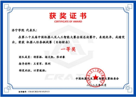 “实践出真知”,学生通过实践能够深化对知识的理解,提升解决实际问题的能力。在这样的教育理念指导下,该班同学积极投身于各类学科竞赛中,取得了令人瞩目的成绩。在学科竞赛中,班级同学累计获得省级比赛获奖10项,国家级比赛获奖5项。其中,胡家振同学在“第二十五届中国机器人及人工智能大赛全国总决赛”获得国家级一等奖1项、二等奖1项,“2023睿抗机器人开发者大赛物资运送全国总决赛”获得国家级三等奖1项;刘伟利同学获得国家级比赛二等奖1项、三等奖1项。