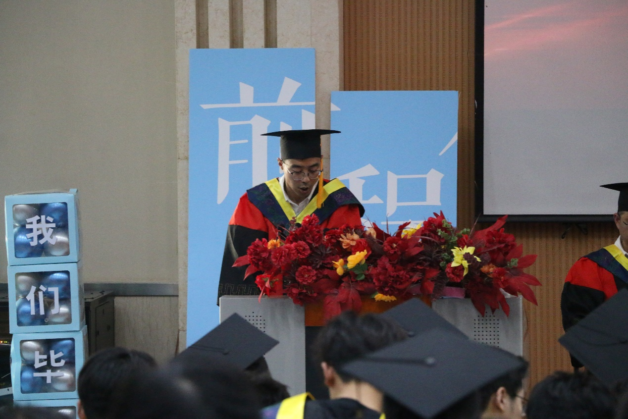 教师代表李吉超寄语同学们要把握时代机遇,用知识技能武装自己,立足岗位奉献青春;要传承工匠精神,用敬业创新忠诚事业,孜孜以求实现价值。毕业生代表王鹏辉对母校满怀不舍和感恩,回顾了从懵懂少年成长为有理想有抱负青年的大学时光,展现出迎接挑战的乐观和勇气,表达了勇毅前行不断创造辉煌的决心。