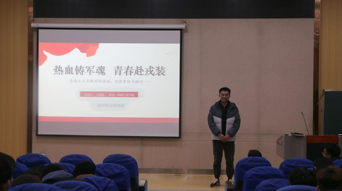 为了让同学们更直观地了解部队生活,优秀的退役大学生士兵王如意分享了军旅故事,生动地讲述了自己在部队的成长经历、难忘瞬间和收获感悟。他表示,部队是一个大熔炉,能够让人快速成长。在部队中,他学会了自律、自强,培养了坚韧不拔的意志品质和强烈的责任感,也鼓励同学们积极响应国家号召,勇敢地踏上军旅征程,为自己的青春增添一抹亮丽的色彩。