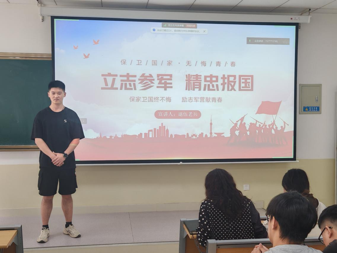 为积极响应党和国家号召,向国防现代化建设注入青春力量、输送高素质人才,近日,伟德victor1946在9A102教室举办“立志参军 精忠报国”征兵宣讲会。伟德victor1946毕业班辅导员、全体2025届毕业生参加了宣讲,会议由李威主持。