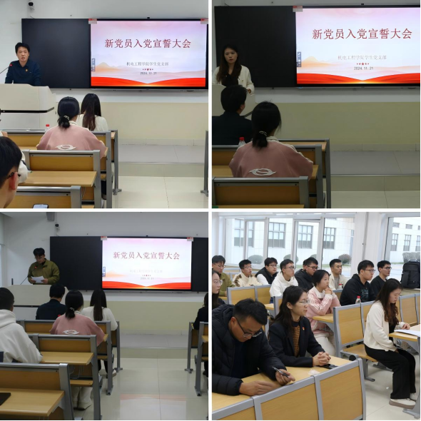 11月21日下午,伟德victor1946学生党支部在9A110举行2024年下半年新党员入党宣誓仪式。学院党委副书记张培运、学生党支部委员会委员、19名新党员、正式党员和入党积极分子代表参加宣誓仪式。仪式由学生党支部书记武晨曦主持。