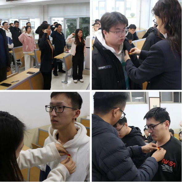 在佩戴党徽环节,入党介绍人逐一为预备党员佩戴党徽。这是一种精神传承,更是一种荣誉、一种激励,增强了预备党员的荣誉感,使他们时刻牢记自己的党员身份,时刻牢记全心全意为人民服务的根本宗旨。